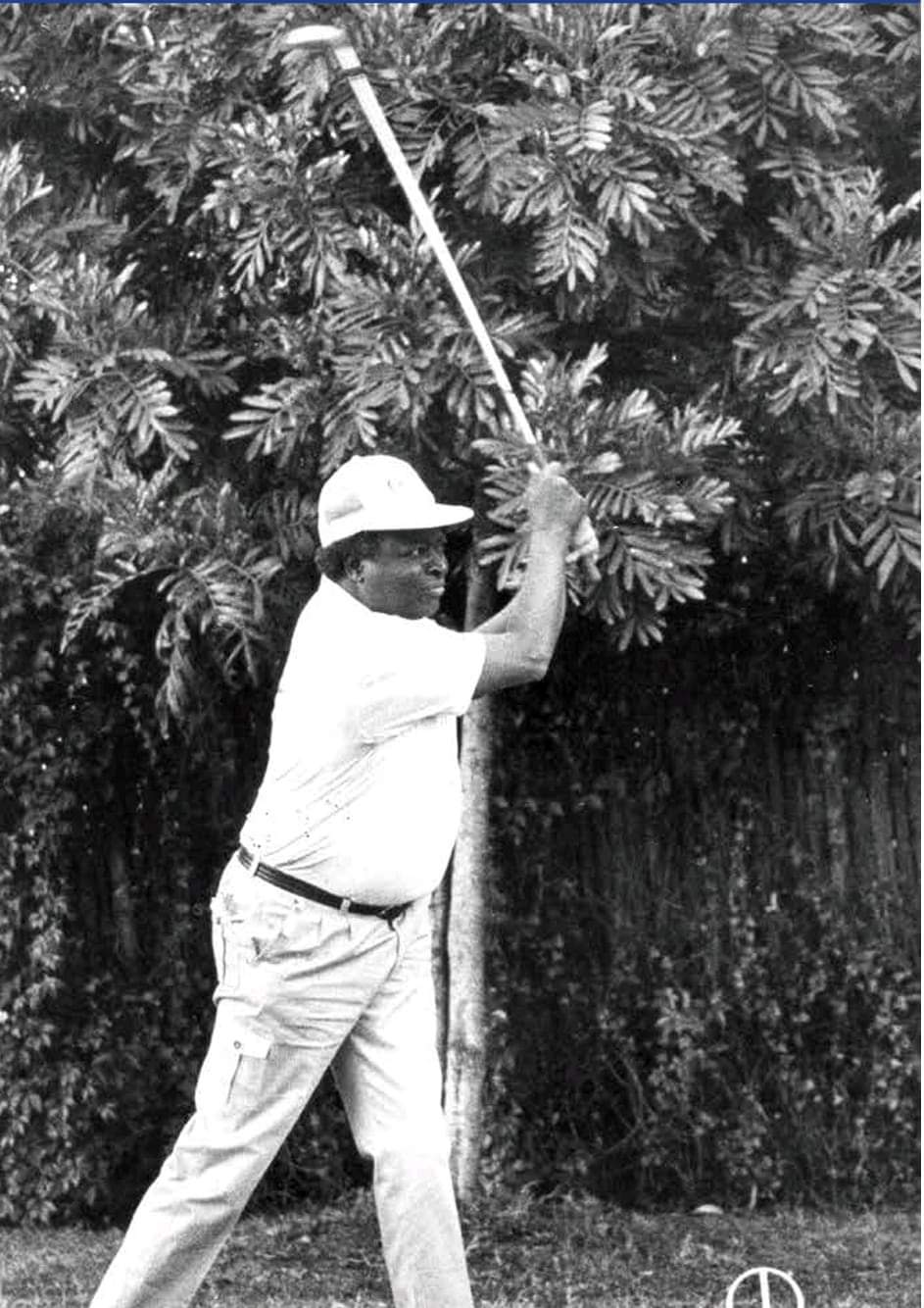 Mwai Kibaki’s golf bag and clubs on display at Muthaiga Golf Club where he used to play.