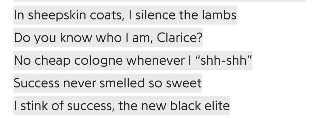 Below, Jay Z plays around with the 's' sounds, using consonance, alliteration, normal rhymes and onomatopoeia all together, most of which will fly over the head of the average listener, but is done nonetheless due to dedication to the craft. Success never smelled so sweet.
